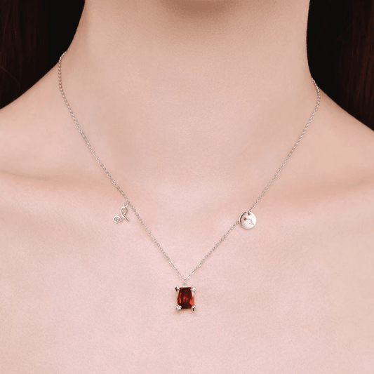 Aries Zodiac Necklace — Sterling Silver Ruby Red Stone