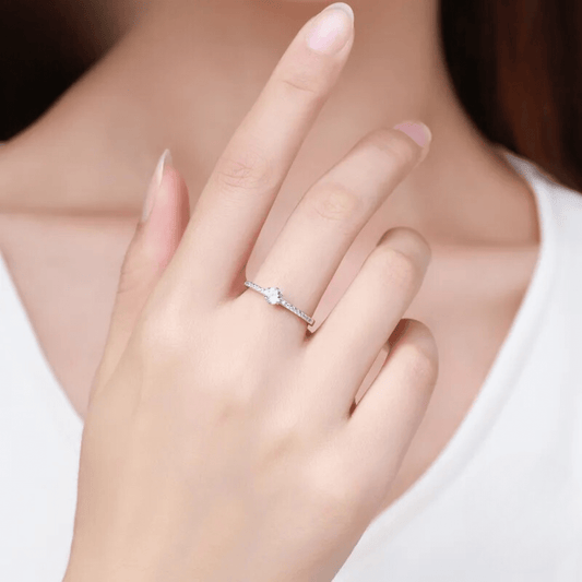 Classic Solitaire Ring — Sterling Silver Six Prong Pavé Band