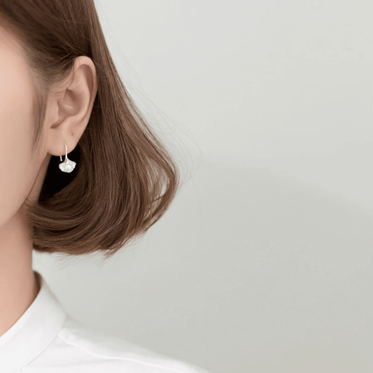 Ginkgo Pearl Earrings — Sterling Silver with Freshwater Pearl