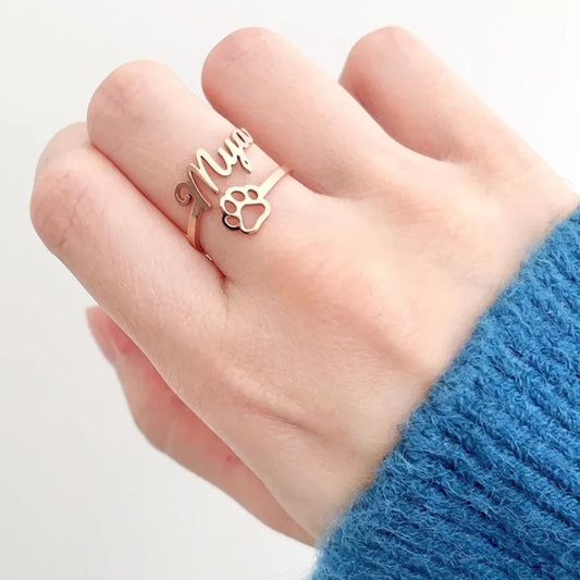 Personalized Paw Print Ring — Pet Name Engraved