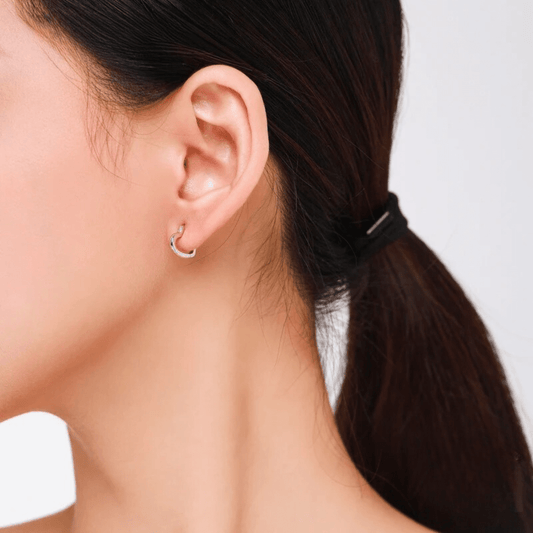 Heart Huggie Earrings — Sterling Silver Heart Shaped Hoop