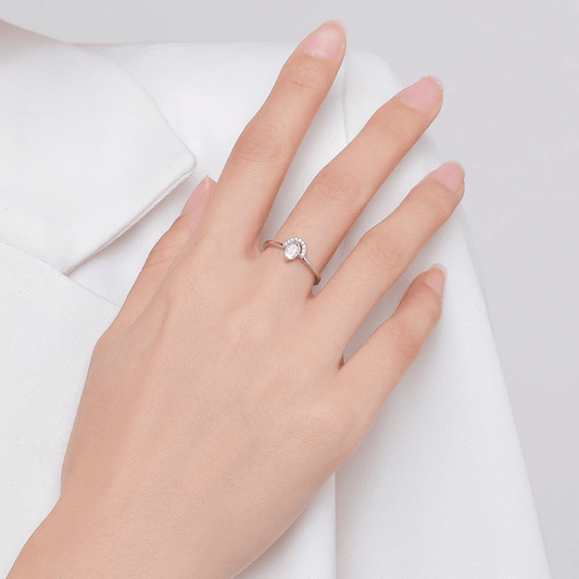 Pear Drop Ring — Sterling Silver Pear Cut Zirconia Half Halo