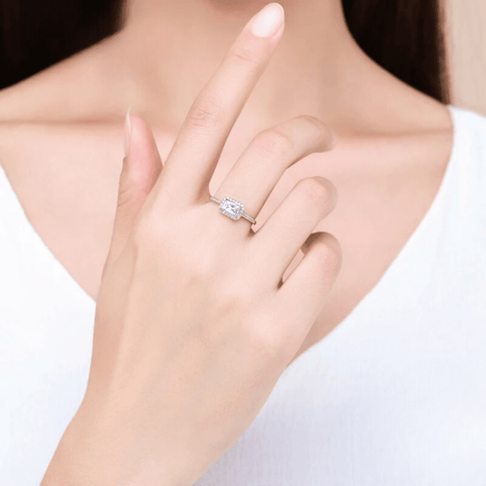 Radiant Halo Ring — Sterling Silver Radiant Cut Zirconia