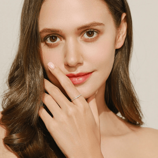 Classic Solitaire Ring — Sterling Silver Six Prong Pavé Band